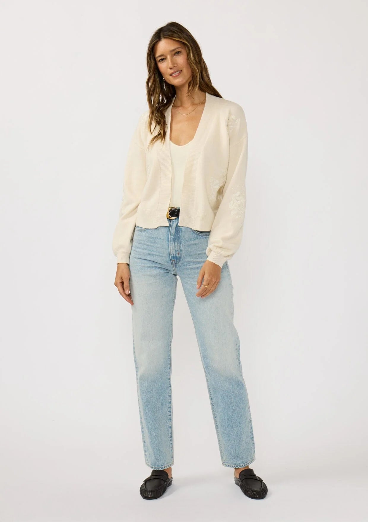 We love this timeless knit cardigan for its unique embroidery and versatile design. With its open-front silhouette and cozy long sleeves, it's perfect for layering over your favorite basics and dresses. An easy, go-with-everything layer that transitions effortlessly from early mornings to late-night outings.