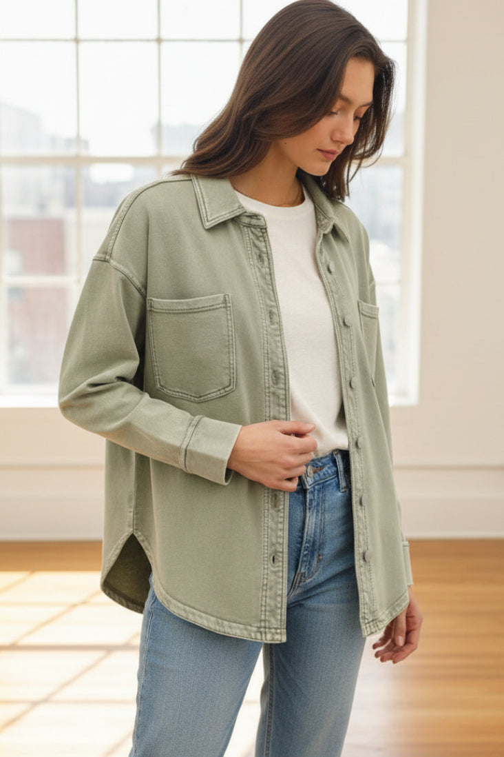 Be Cool Cotton Knit Shacket (Sage)