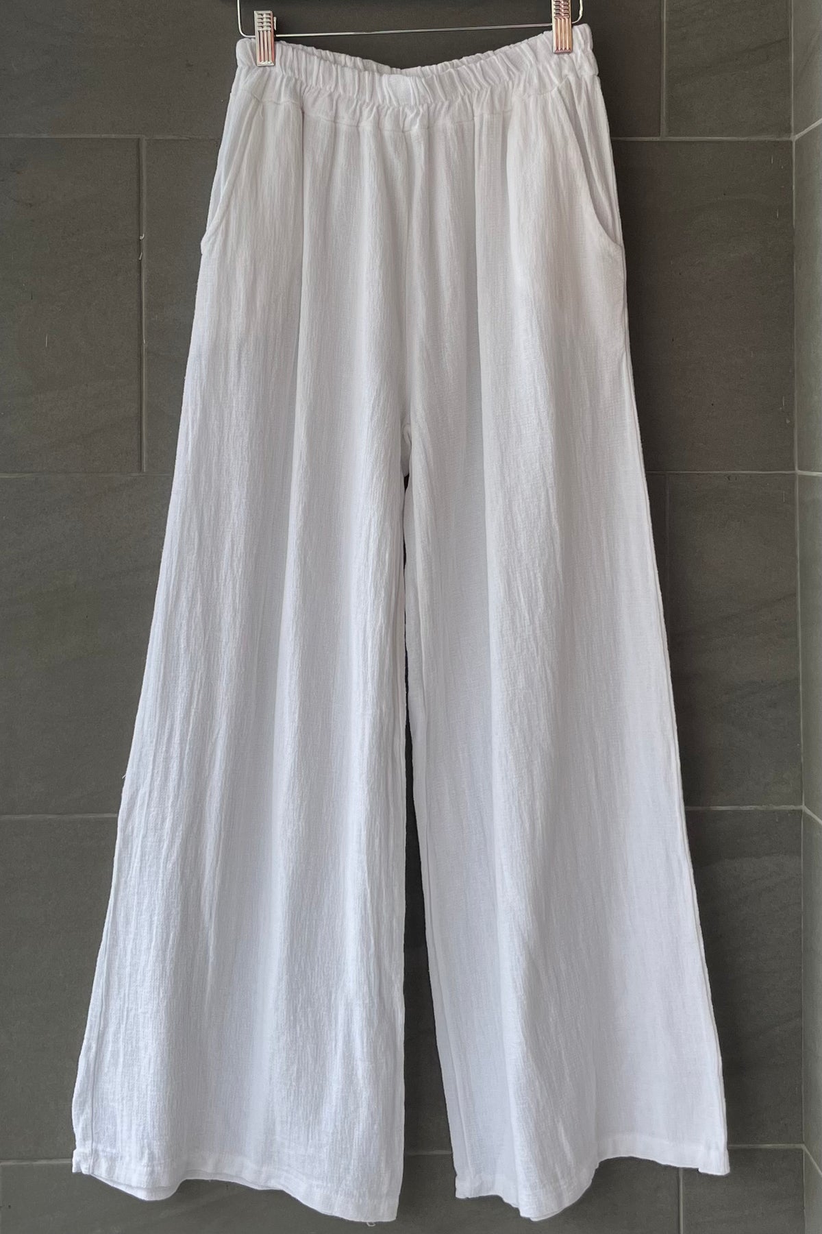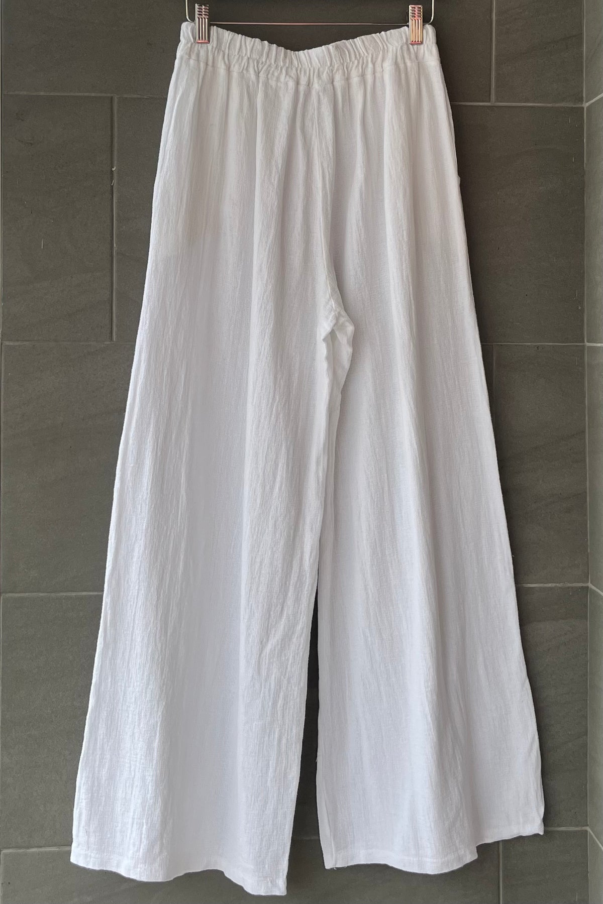 These pants are made from lightweight, breathable linen-cotton blend for all-day comfort in warm weather. Designed with an elastic waistband for an easy, flexible fit, they offer a relaxed feel that’s perfect for everyday wear. A simple, effortless summer staple.