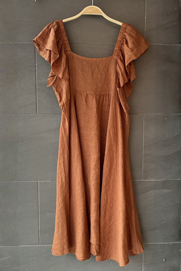 Meo Linen Flutter Dress (Saddle Brown)