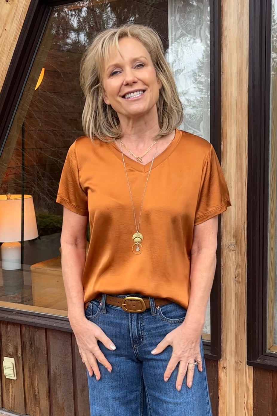 Meo Satin V Neck Tee (Rust)