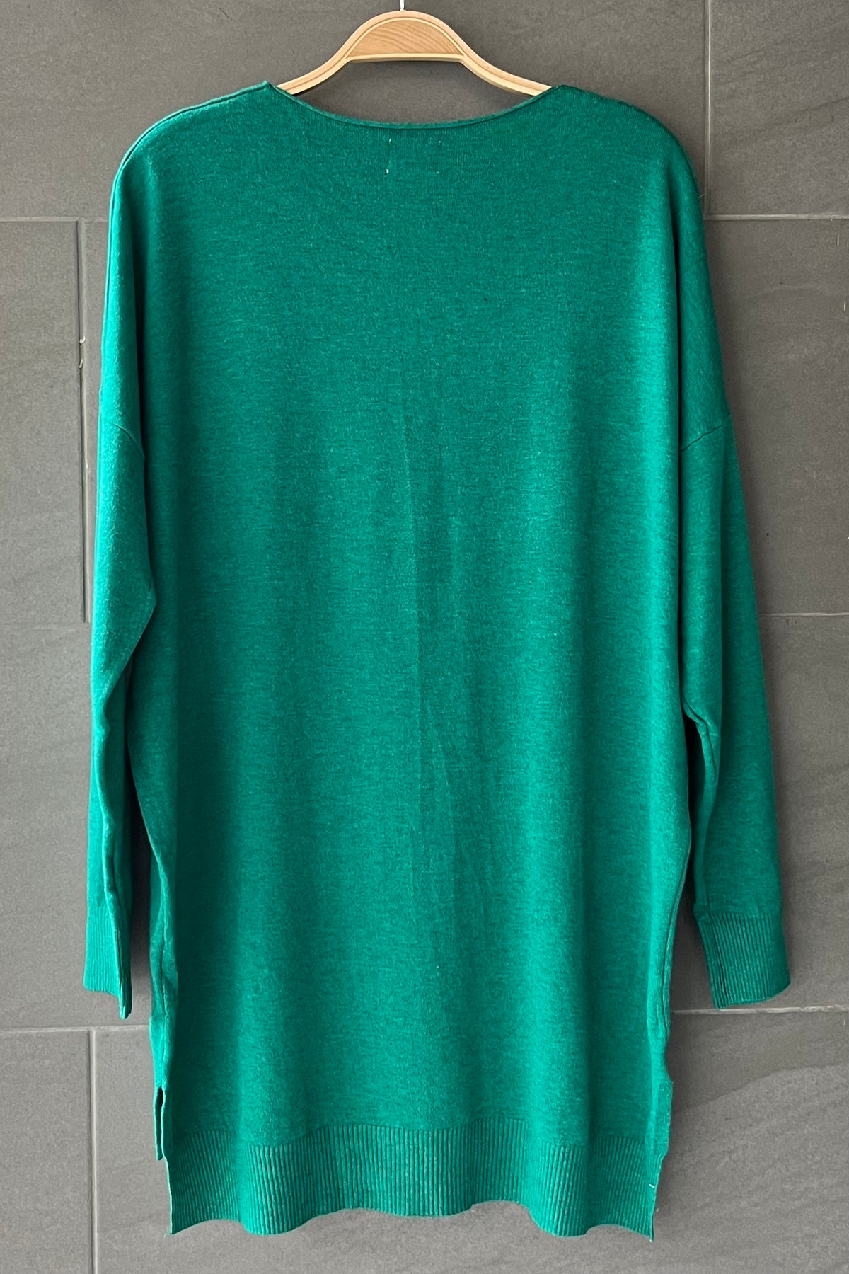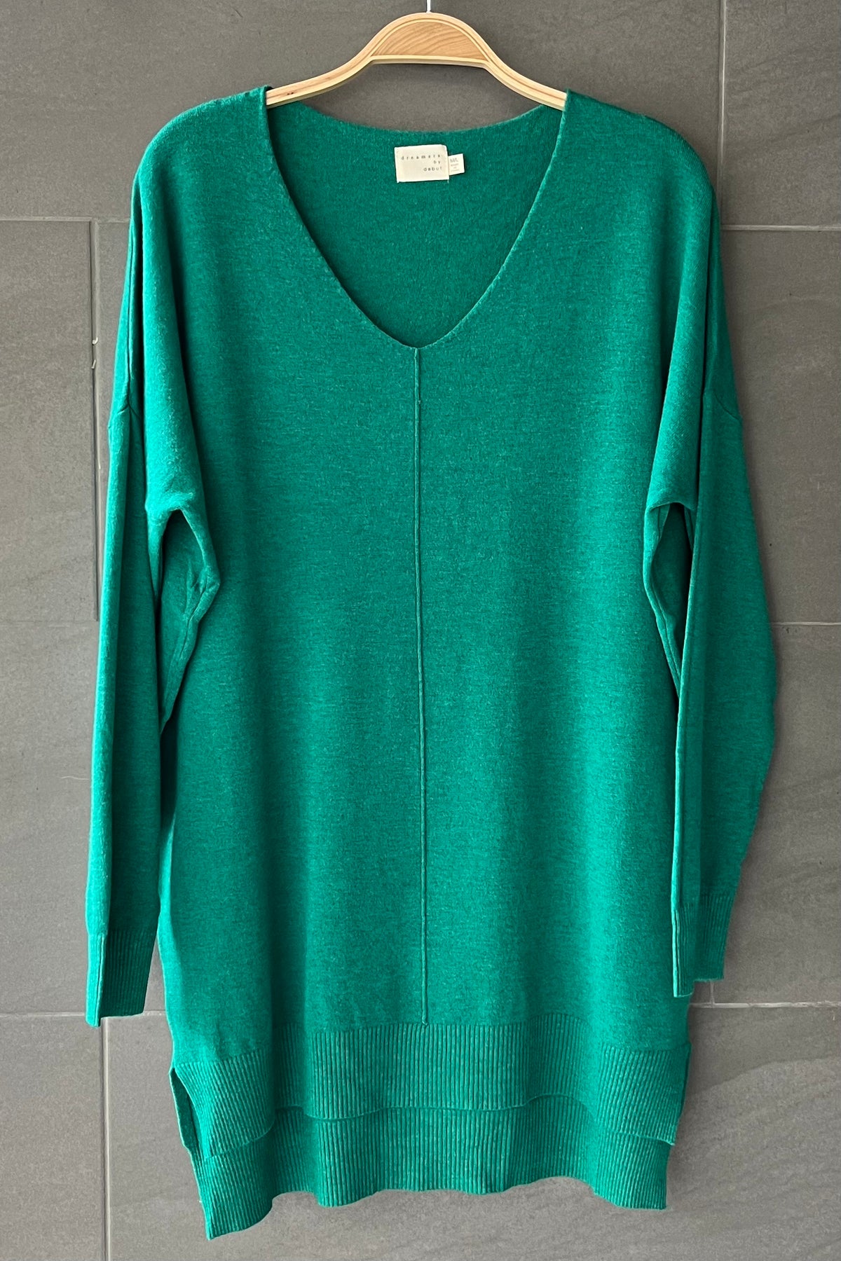 This is a lightweight, soft knit sweater with a front seam detail, flattering V neckline and a relaxed fit. Wear loose or tuck into a pair of your favourite jeans.