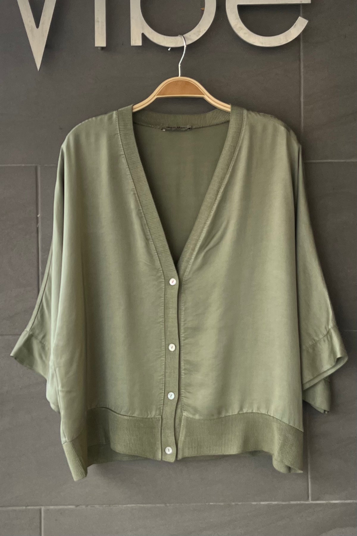 Meo Satin Button Cardi (Olive)