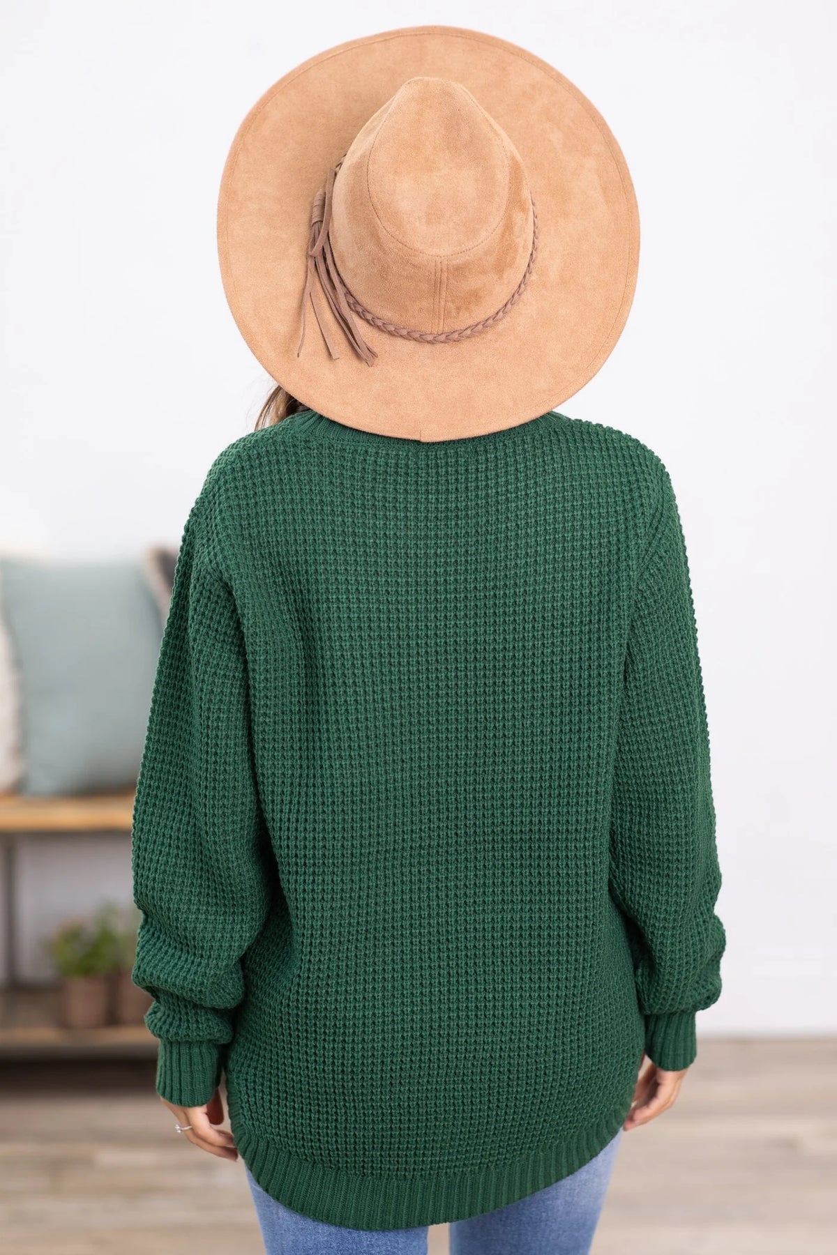 This cozy sweater is made from a lightweight waffle material with a round neckline, ribbed trim, and high-low finishing. Wear with your favourite tank and jeans for an easy, casual Fall outfit.