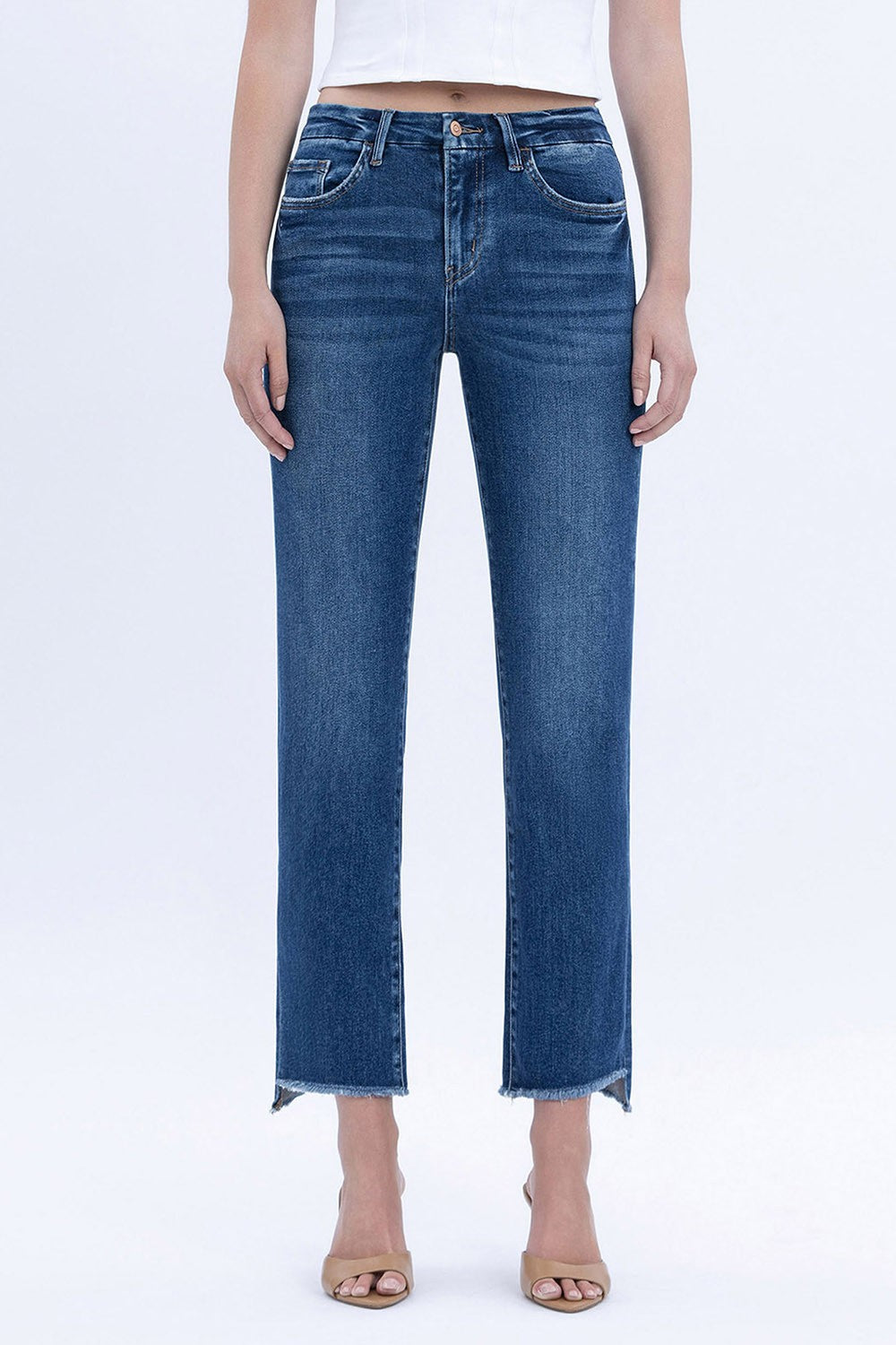 Made from comfort-stretch denim, the Flying Monkey Raw Hem Slim Leg Jean provides gentle support with a high-rise waist designed to flatter your figure. The raw step hem adds a unique, fashionable detail, making these jeans a reliable choice for everyday comfort and style.