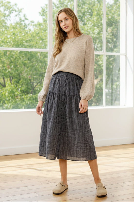 A little prairie magic for your wardrobe. This dreamy skirt features a smocked waistband for all-day comfort and a cute button-front detail. Its lightweight fabric and flowy silhouette make it feel effortlessly free-spirited.