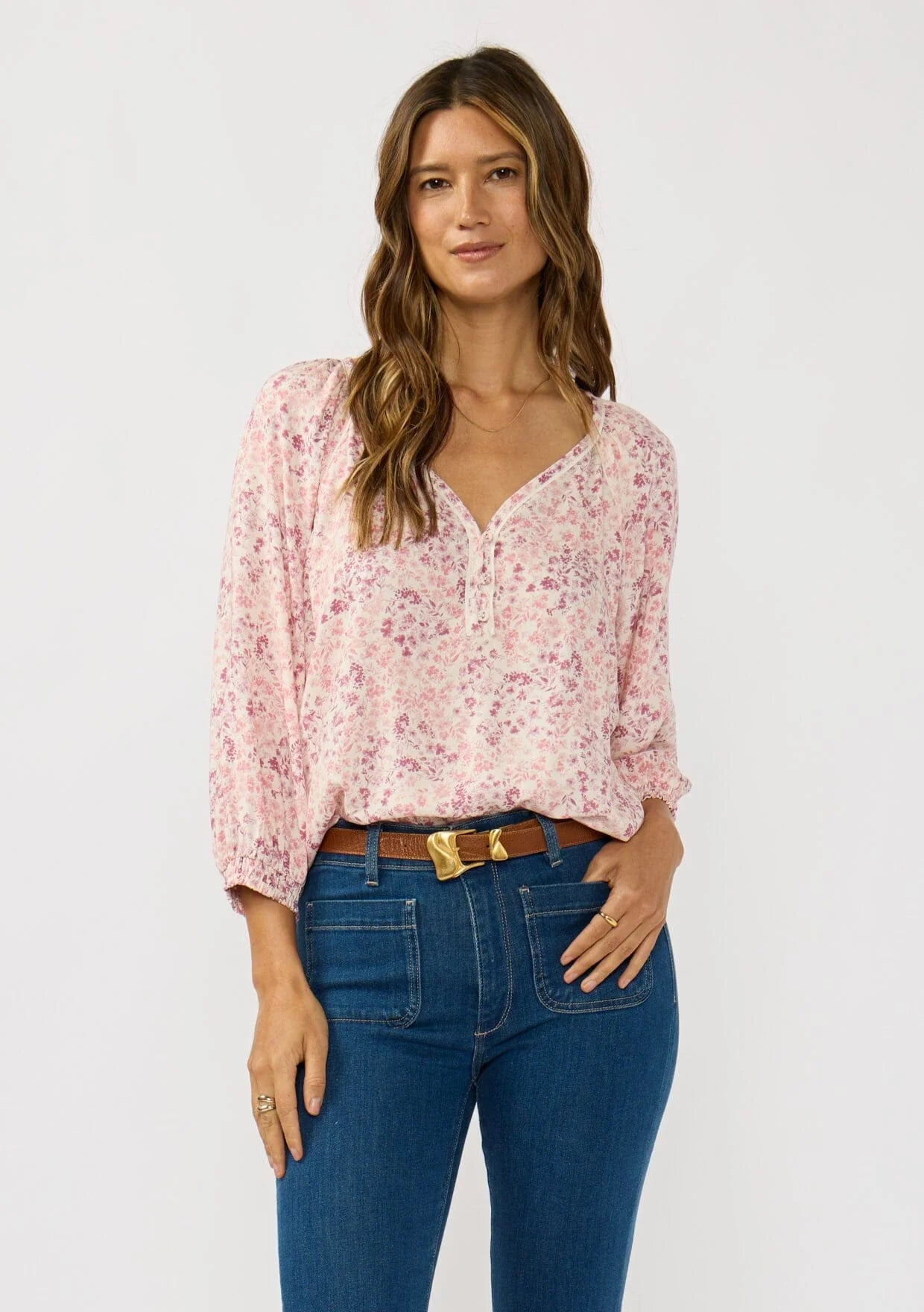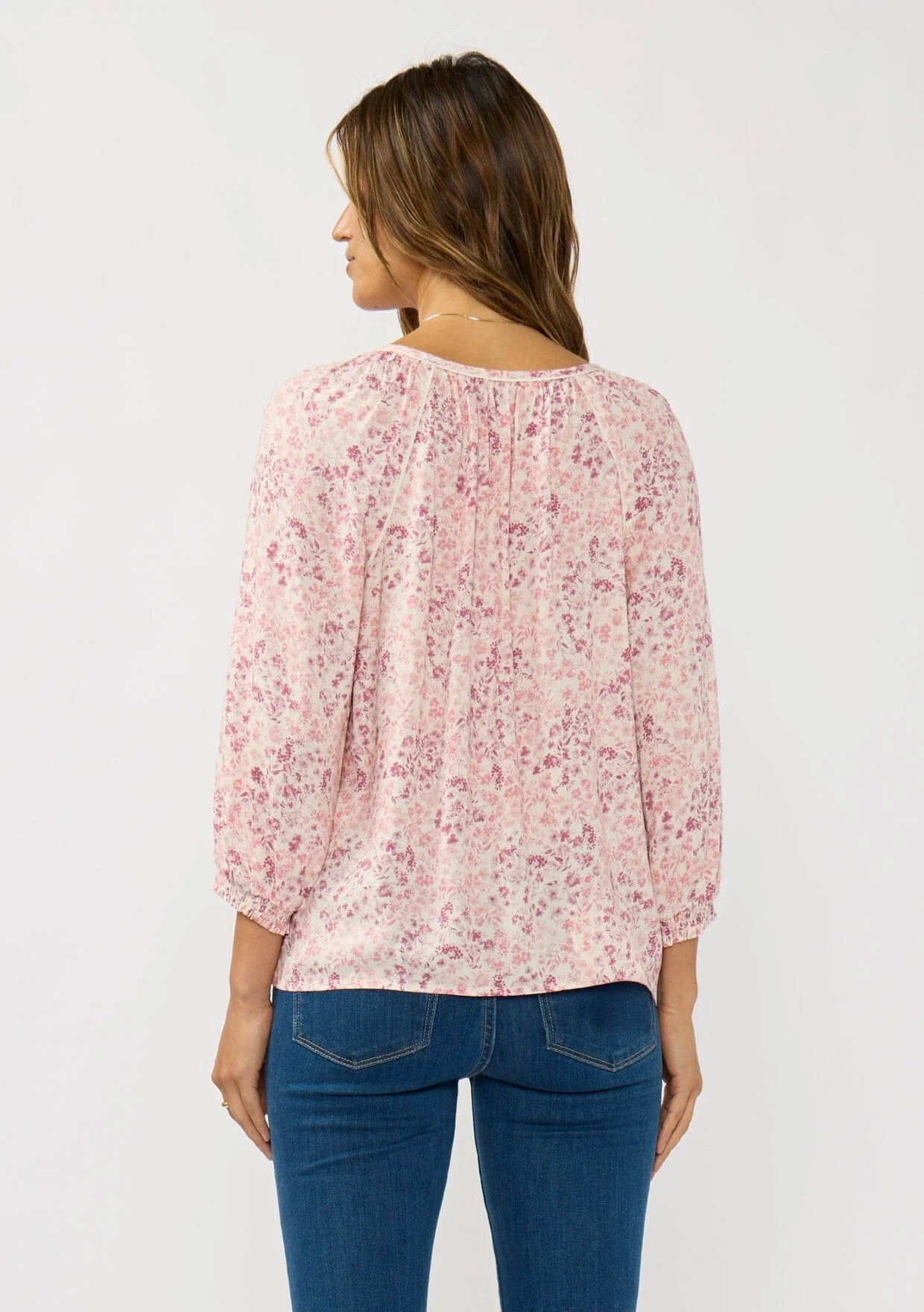 An ultra-feminine floral print refreshes this classic boho blouse with an elevated, everyday feel. Designed with 3/4-length sleeves, smocked cuffs, and a flattering v-neckline, it offers a relaxed fit that’s easy to wear. A lightweight staple that brings a soft, spring-ready touch to your wardrobe.