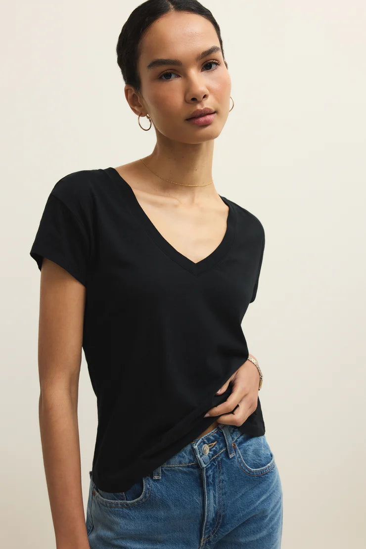 Made from lightweight cotton jersey, this v-neck tee feels easy and breathable, perfect for casual days. With short sleeves and a relaxed fit, it’s great for morning coffee runs, lazy afternoons, or anything in between.