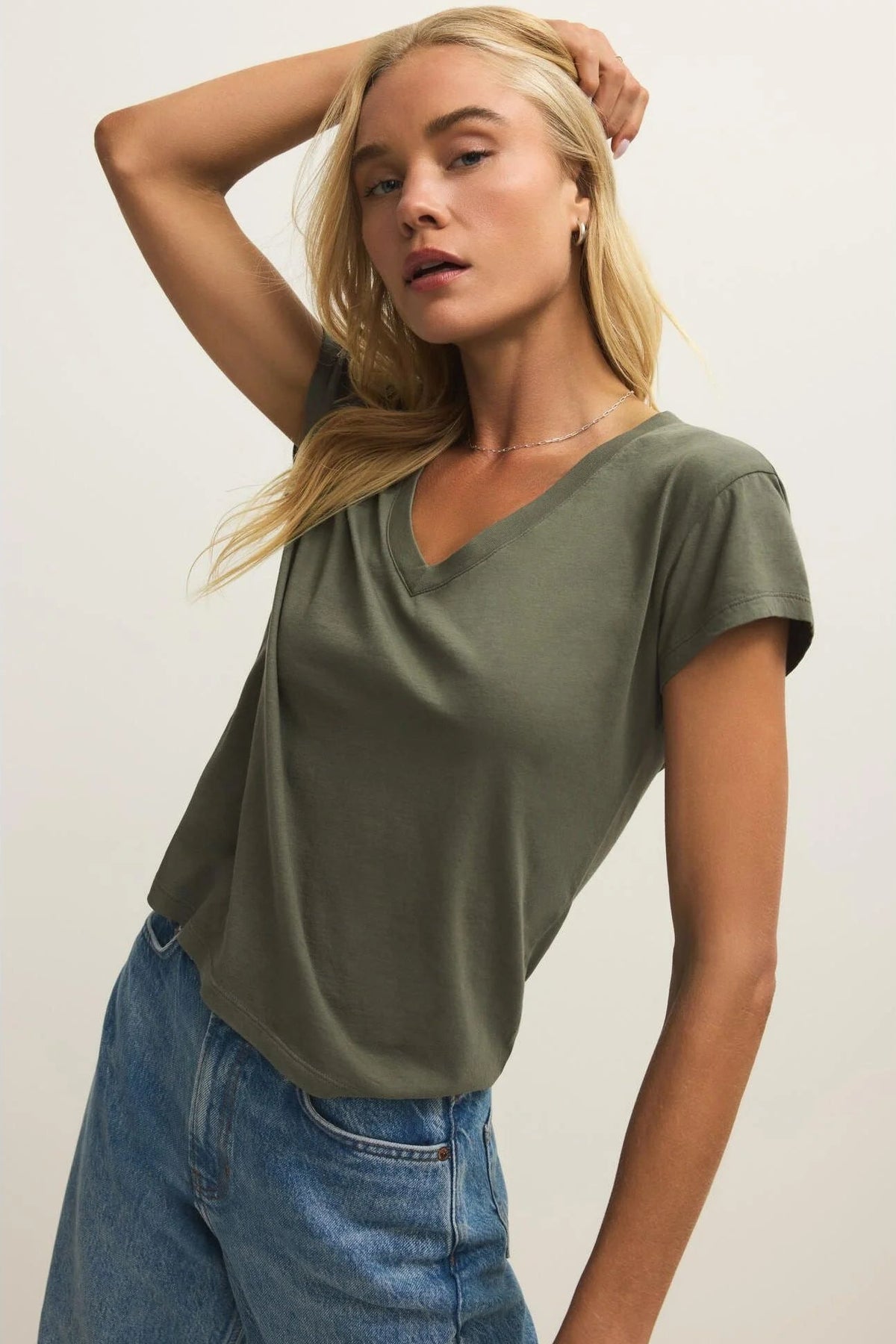 Z Supply Cotton V Neck Tee (Tea Leaf)