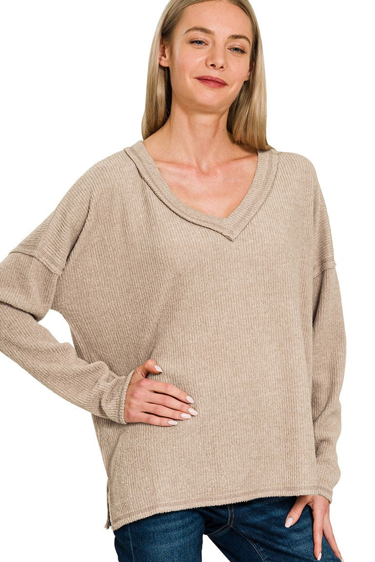 Zen Brushed V Neck Sweater (Ash Mocha)