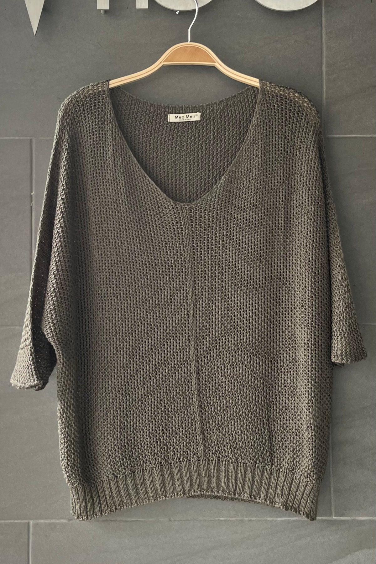 Stay comfortable and stylish in our Meo Loose Knit Sweater. With a subtle V neckline, 3/4 length sleeves, and lightweight breathable fabric, you can dress it up or down for any occasion. Wear with your favourite pair of jeans and a layering tank.