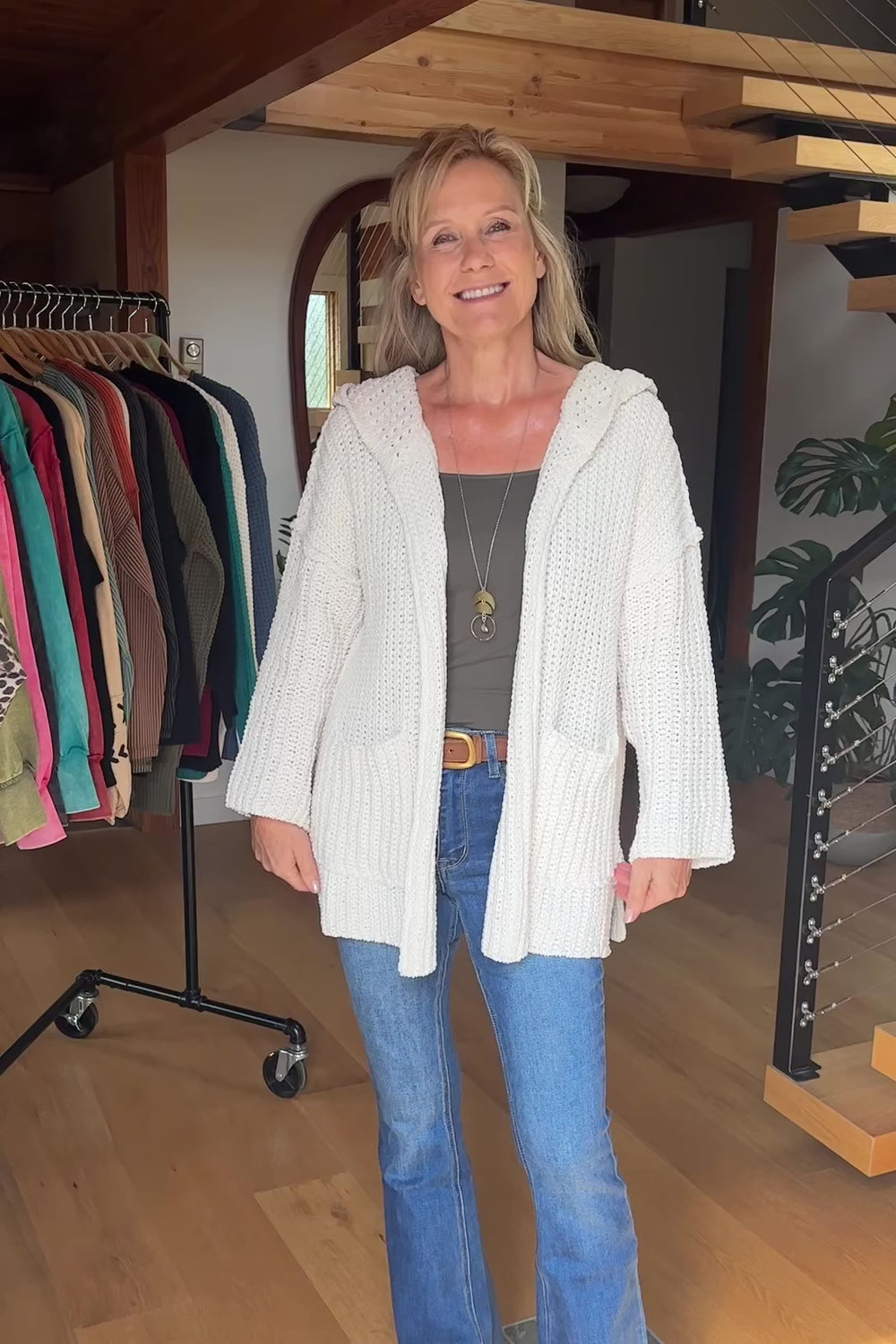 Wrap yourself in warmth with the My Cozy Chenille Knit Cardigan. This thick knit cardigan features a soft chenille fabric, a hood for extra comfort, and convenient pockets to keep your hands cozy or store essentials. Perfect for chilly days, it combines style and snugness effortlessly.