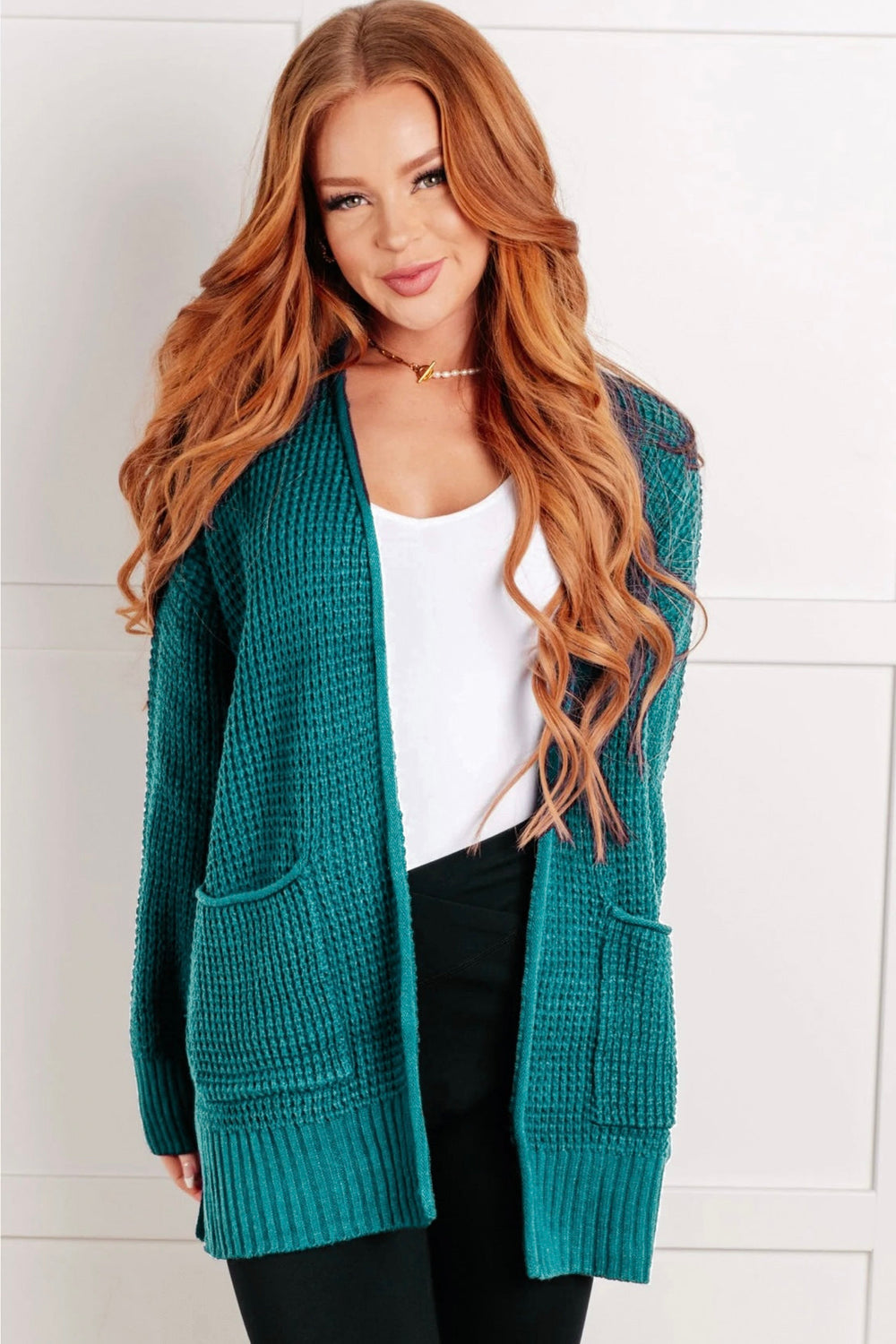 Zen Waffle Knit Cardigan (Teal)